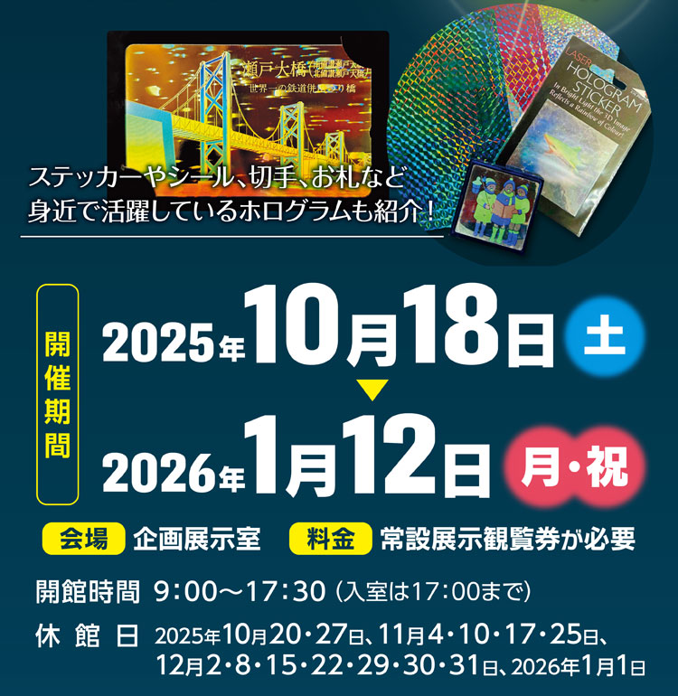 企画展「アメイジングホログラフィックワールド ~おどろきのホログラムの世界~」 2025年10月18日(土曜日)~2026年1月12日(月曜日・祝日)