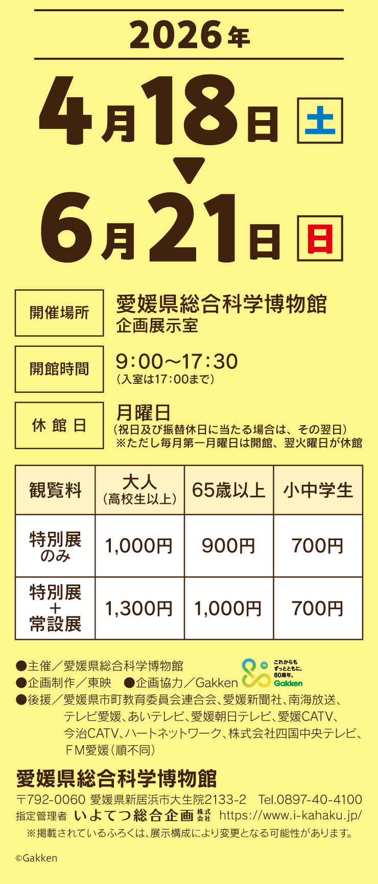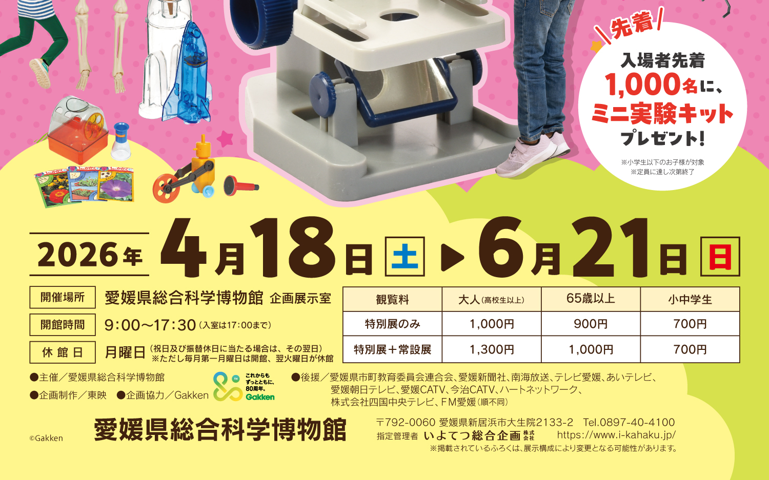 特別展「学研『科学と学習』ふろく展 百聞は実験にしかず!」 2026年〇〇月〇〇日(〇〇)~2026年〇〇月〇〇日(〇〇)